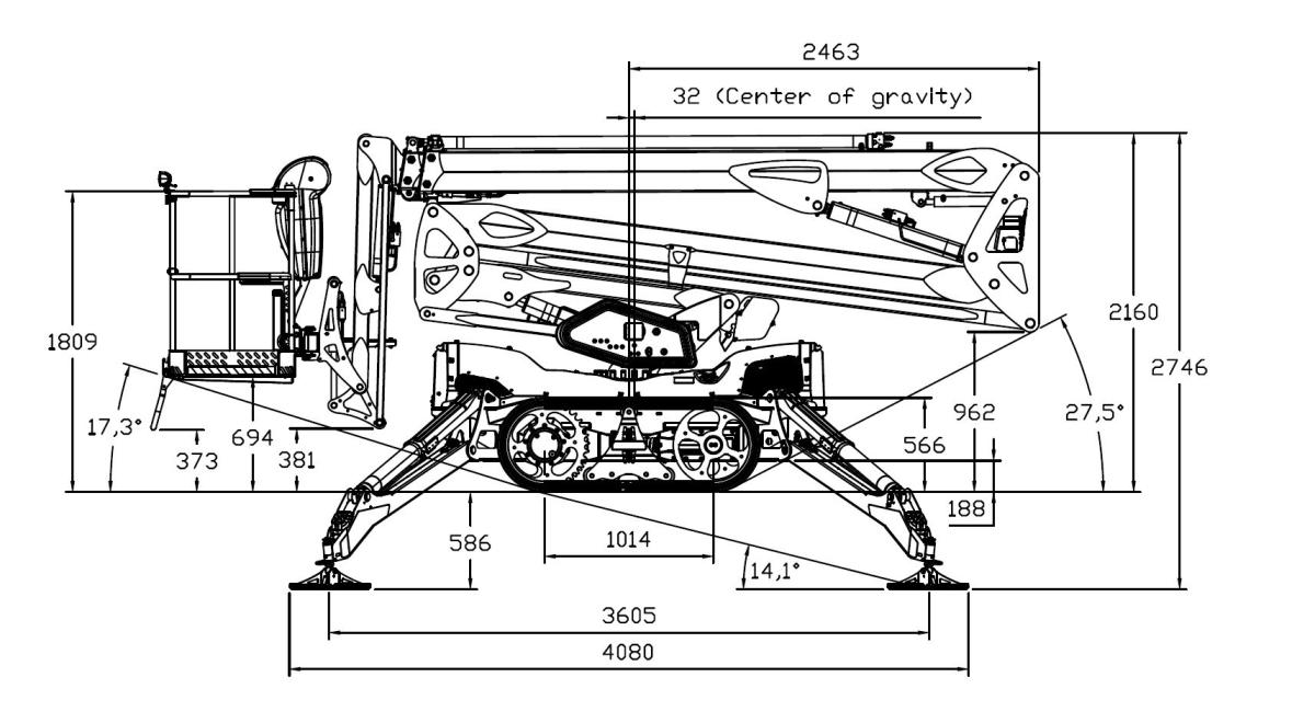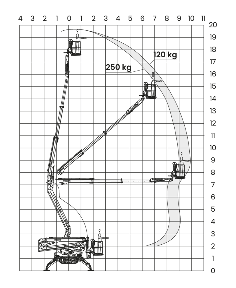 Der Leguan 195 bietet eine beeindruckende seitliche Reichweite von 9,9 Metern und eine Auf- und Abwärtsreichweite von über 19,7 Metern. Noch bemerkenswerter ist seine Fähigkeit, eine seitliche Reichweite von bis zu 9 Metern mit einer maximalen Arbeitslast von 250 kg zu erreichen. In Kombination mit den schnellsten Auslegerbewegungen auf dem Markt bietet der Leguan 195 eine unübertroffene Effizienz bei Arbeiten in der Höhe.
